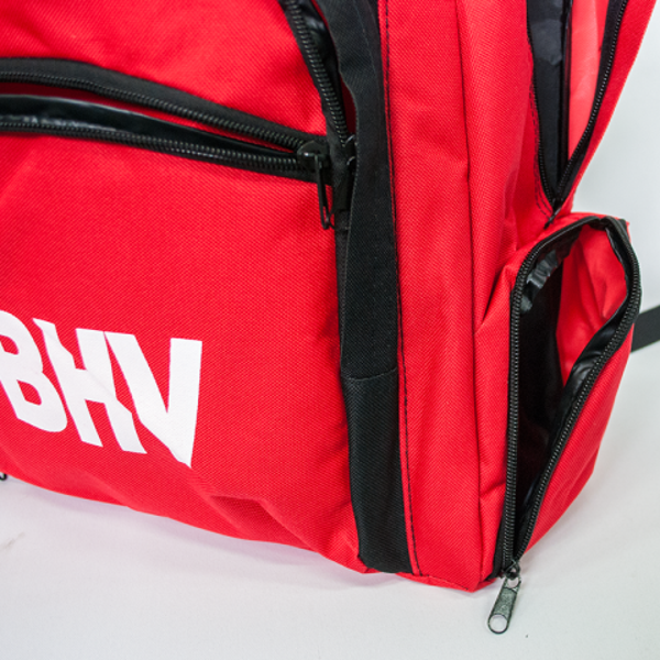 BHV tas ongevuld met 5 opbergvakken en een inhoud van 15 liter. De rugzak heeft een opvallend rode kleur, is voorzien van BHV opdruk en heeft verstelbare draagriemen. Alle vakken zijn voorzien van een ritssluiting. Ideale rugtas voor het opbergen van uw EHBO en BHV materialen. Zo heeft u alle hulpverleningsmaterialen meteen voorhanden bij een ongeval of calamiteit. De indeling van de tas is als volgt: Groot opbergvak, 2 extra opbergvakken aan de voorzijde en 2 kleine vakjes aan de zijkant.